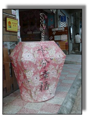 十分老街有好幾間出售天燈和相關美術品的小店,迷你天燈和座臺擺設等大同小異,作為遊客當然要買點走支持一下當地經濟。我們選了一間有書法老師題字服務的店,選好天燈,老師問我們要提甚麼字,歐巴桑說了一大堆自誇自讚的:「十分美麗」、「十分窈窕」等,大叔一向正直善良,甚少說違心之言,於是對老師說:「簡單一句『來自美麗的十分』就可以了。」